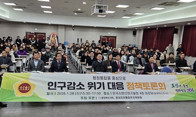 음성·진천 통합추진위원회 토론회 개최 “지역 명칭 ‘진성시···행복한 명품도시” 목표 충북도의회 인구소멸 대책 특별위원회는 음성·진천 통합추진위원회는 1월 28일 충북혁신도시에서 ‘음성·진천 통합을 중심으로 인구감소 위기 대응 정책토론회를 개최했다. 2026-01-28 19:00:07