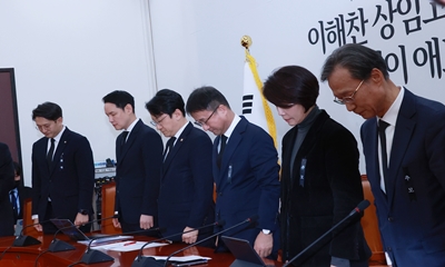 민주당은 1월 29일 국회에서 열린 원내정책조정회의에 앞서 이해찬 민주당 상임고문을 애도하는 묵념을 올렸다. 이어 모두발언에 나온 한병도 원내대표는 오늘 국회 본회의에서 “취업 후 학자금 상환 특별법” 등 90건의 민생 법안을 처리한다고 밝혔다. 한병도 원내 2026-01-29 10:12:48