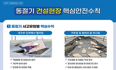 고용노동부 서울남부지청은 연말까지 매월 2회 산업재해 발생 특성과 시기적 요인 등을 반영한 테마를 선정해 1주일간 동절기 안전보건 수칙 등을 집중적으로 점검한다. 고용노동부 서울남부지청(지청장 송민선)은 12월 1일부터 12월 5일까지 지역 내 공공기관 발주 2025-11-28 15:55:01