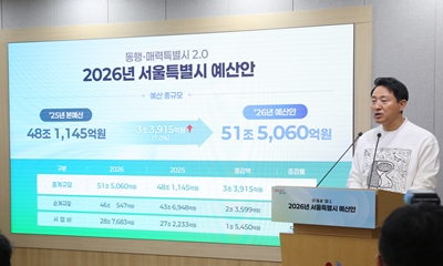 오세훈 서울시장은 10월 30일 서울 중구 서울시청에서 기자회견을 열고 “‘2026년도 예산안’으로 총 51조 5,060억 원을 편성해 31일 서울시의회에 제출한다”라고 밝혔다. 이날 오세훈 시장이 발표한 내용에 따르면 예산안 중 순계예산 규모는 46조 547억 원(회계 2025-10-30 16:40:35