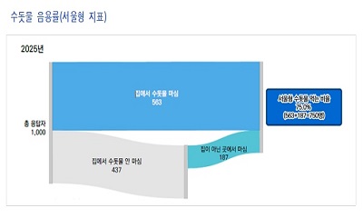서울시가 여론조사기관 한국리서치에 의뢰해 지난 8월 13일부터 19일까지 만 18세 이상 서울시민 1,000명을 대상으로 온라인 설문 방식으로 진행 결과 수돗물을 ‘먹는 물’로 이용하는 시민은 75%로 지난해보다 5.4%P 증가한 것으로 나타났다. 이번 조사는 서울 시민 2025-11-10 10:10:10