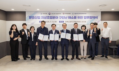 고용노동부 서울남부지청(서울남부고용센터)는 9월 16일 코엑스마곡 컨벤션센터에서 항공산업 지상조업 분야의 구인난 해소와 고용안정 등을 위해 강서구, 한국항공협회, 서울지역 인적자원개발위원회와 업무협약을 체결했다. 이날 협약식에는 박해남 서울남부고용센터 2025-09-17 18:02:26