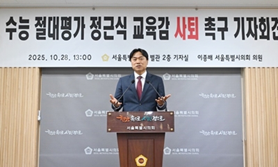 정근식 서울시 교육감이 10월 23일 취임 1주년 기자간담회에서 “상대평가의 폐해를 줄이려면 절대평가로 가야 한다”고 주장한 것에 대해 강한 비판이 나왔다. 이종배 서울시의원은 10월 28일 오후 서울시의회 별관 기자실에서 기자회견을 열고 정근식 서울시 교육감 2025-10-29 15:48:48