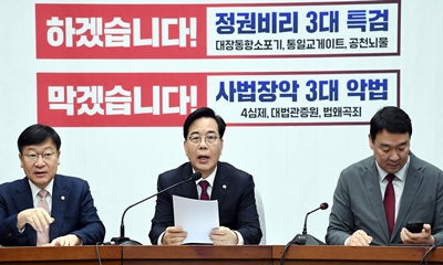 민주당은 25일 윤석열 독재정권 하에 조작 기소 진상규명 및 공소 취소를 위한 국정조사 추진위원회를 구성했다. 윤석열 정치검찰이 자행한 표적 수사와 조작 기소의 전모를 끝까지 파헤치기 위해 한병도 원내대표가 직접 위원장을 맡았다. 한병도 원내대표는 이와 2026-02-26 11:15:26