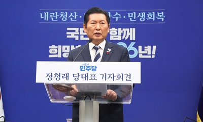 정청래 민주당 대표는 12월 26일, 국회에서 취임 147일 만에 첫 기자회견을 열고 헌법 수호와 민주주의를 강조했다. 정청래 대표는 “역사적 책무를 계속 이어가겠다”라며 “김대중, 노무현, 문재인, 이재명 네 분 대통령과 국민이 그토록 원했던 대한민국을 생각한다 2025-12-26 10:49:54