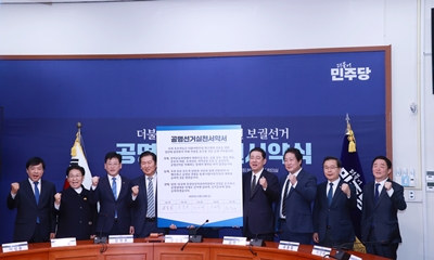민주당은 12월 19일 국회 당대표 회의실에서 1월 11일 치러지는 최고위원 보궐선서 공명선거 실천 서약식을 열고 네거티브 없는 포지티브 선거를 다짐했다. 이번 최고위원 보궐선거에는 이성윤, 문정복, 유동철, 이건태, 강득구 의원이 후보로 출마했다. 정청래 당대 2025-12-19 10:13:24