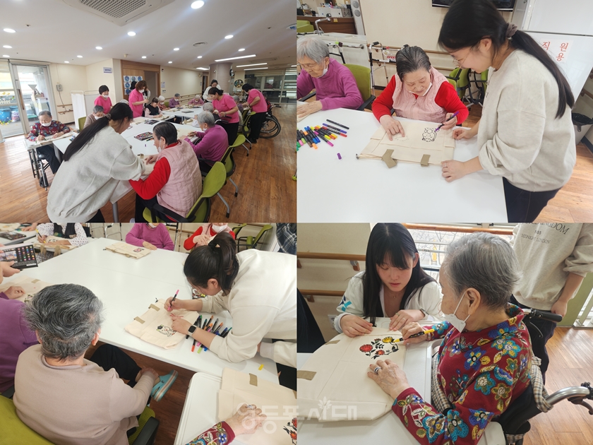 청소년들은 어르신들과 함께 커스텀 에코백 만들기 체험을 진행하며 서로 이야기를 나누고 따뜻한 시간을 보냈습니다.