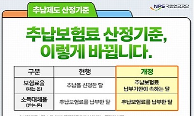 3차 연금 개혁에 따라 보험료율과 소득대체율이 동시 인상됨에 따라 추후 납부하는 제도가 달라졌다. 달라진 내용은 국민연금 보험료를 내지 못한 기간에 대한 추후 납부하는(추납 보험률) 적용 기준월이 ‘신청한 날이 속하는 달’에서 ‘납부 기한이 속하는 달’로 2025-11-26 08:39:30