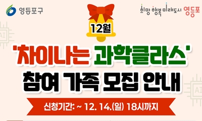 영등포구 미래교육재단이 다양한 공연과 체험을 통해 학부모와 자녀가 함께 참여하며 특별한 연말 추억을 만들 수 있는 과학 문화 특별프로그램 ‘차이나는 과학클라스’의 참가자를 모집한다. 영등포구 미래교육재단이 연말을 맞아 온 가족이 함께 참여하는 이번 프로 2025-12-10 15:28:44