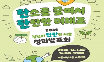 서울 소재 대학 내 활동 가능한 대학생 또는 마을 중심 활동이 가능한 청년 등 ‘청년’이 중심되어 탄소중립 생활 실천을 추진한 ‘청년이 탄탄한 서울’ 성과발표회가 열린다. 서울시는 12월 6일(토) 14시 서울시청 다목적홀에서 ‘청년이 탄탄한 서울’ 성과발표회 2025-12-02 11:24:49