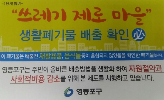 재활용품, 음식물의 혼합 배출이 근절되지 않아 폐기물 처리 비용이 늘고 있는 가운데 ‘쓰레기 제로 마을(폐기물 배출확인제)’을 추진하는 구가 있어 관심을 끌고 있다.