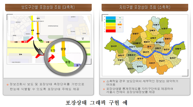 서울시 보도(步道)가 똑똑해질 전망이다. 서울시가 서울시내에 깔려있는 방대한 길이의 보도에 대한 노선별 연장, 면적, 포장 재질 등 다양한 이력을 한 눈에 볼 수 있도록 DB화해 이를 바탕으로 도로포장의 교체 기준을 마련하기 때문이다. 즉, 그동안 보도는 자치구에 위임된 사무라는 이유 등으로 보도 관련 DB가 자치구별로 제각각이었고 포장 재료와 공법 혼재 등으로 원칙 없이 교체가 이뤄져왔지만, 이제는 시가 과학적인 이력 관리를 통해 체계적으로 관리한다. 시는 ‘보도블록 10계명’ 발표(4월 25일) 이후, 현실적인 운영과 관련해 불필요한 보도공사 규제에 대한 근거를 마련하고, 보도포장 교체 기준 등을 제시하기 위해 이번 시스템을 개발하게 됐다고 설명했다. 시공년도, 위치, 연장, 설계정보 등 보도 포장상태 DB 구축해 이력관리 ‘보도관리시스템’은 보도에 대한 기본 정보 등을 축적해 DB화하고, 보도 포장상태에 대한 평가지수도 개발하는 등 보도현황을 보다 객관적으로 수치화해 관리하는 것을 말한다. DB항목에는 노선명, 위치, 연장, 폭, 시공년도, 시공목적, 횡단구성, 설계․시공․감리․감독 정보, 포장재료 등이 포함된다. 이를 활용하면, 조건검색 기능, 통계자료 산출 기능, 그래픽 제공 기능 등이 가능해져 서울시의 보도 포장 상태를 한 눈에 볼 수 있다. 포장 상태는 불량 상태인 1점부터 양호한 상태인 10점까지 점수를 부여해 수치로 확인할 수 있도록 한다