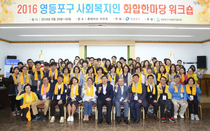 “조직발전의 방향, 사회복지정책수립 논의 영등포구 사회복지협의회(회장 정진원)는 영등포구 관내 기관, 실무자 간의 협력과 소통으로 현장업무의 효율성 도모하고 민·관과의 협력으로 정보 교류 및 업무협조 체계 강화를 위한 ‘2016 영등포구 사회복지인 화합 한마당 워크숍’을 진행했다.