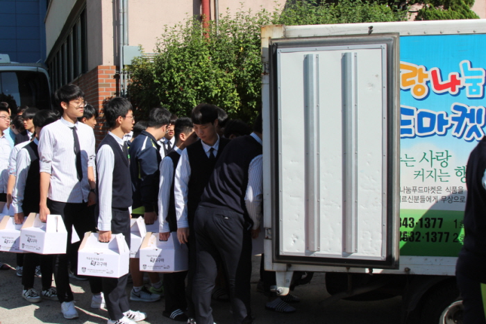 10일(월) 장훈고등학교 학생들이 1년 동안 농촌봉사활동 작물체험으로 일군 고구마를 영등포구사회복지협의회(회장 정진원)가 운영하는 영등포사랑나눔푸드마켓에 기부했다.