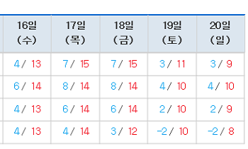 기상청은 “10일 수능 예비소집일인 16일(수)과 수능 당일인 17일(목)에는 이동성고기압의 가장자리에 들어 전국에 가끔 구름이 많고 기온은 평년보다 2~5도가량 높을 것으로 보인다”면서 수능 한파는 없을 것으로 예상했다. 기상청 홈페이지에서 ‘2017학년도 대학수학능력평가 시험장 기상정보’를 제공하며, 시험장 이름(학교명)으로 날씨 조회가 가능하다.