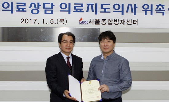그간 단순 병․의원 및 약국안내, 응급처치지도 등은 이뤄졌으나, 전문적인 의료상담 서비스는 야간에만 응급의학과전문의가 상주해 시민들이 불편을 겪었다. 전문의료상담 서비스는 응급의학과 등 전문의로 구성돼 시민들이 병원진료 결과 중 궁금한 사항을 문의하면 답변을 해주거나, 심정지환자와 같은 응급상황 시 최초 목격자인 시민이 올바른 대응을 할 수 전문적인 응급처치 방법을 안내하는 것이다. 이에 서울시 소방재난본부는 5일(목) 서울종합방재센터 작전통제실에서 시민들에게 전문적인 응급의료서비스를 야간에도 확대 운영하기 위해 ‘2017년 전문의료상담 의료지도의사 위촉식’을 가졌다. 위촉식에서는 이성묵 서울종합방재센터 소장이 서울대학교병원 응급의학과전문의 이경원 등에게 위촉장을 전달했다. 이번 위촉식에서 전문의료상담 의료지도의사로 위촉된 이는 모두 41명으로, 서울시내 19개 응급의료기관에 근무하는 응급의학과 등 전문의로 구성됐다. 이들은 서울종합방재센터 내 구급상황관리센터에서 365일 24시간 교대로 근무하면서 전문적인 응급처치 방법을 안내하고 시민들이 병원진료와 관련해 궁금해 하는 사항에 답변을 제공해 각종 질병에 관한 궁금증 해소와 대민 의료상담 서비스를 제공하게 된다. 응급의료 서비스는 국번 없이 119를 누른 뒤 ‘전문의료상담’을 받고 싶다고 얘기하면 구급상황관리센터 내 전문의와 전화통화를 할 수 있다. 또한 심정지 및 중증외상 등과 같은 응급상황은 접수 즉시 구급출동과 동시에 3자 통화 시스템을 가동해 신고자에게 스마트 영상 응급처치 지도와 전문의료상담 및 구급대원 의료지도 등이 동시다발적으로 이뤄져 골든타임을 사수에 힘쓰게 된다. 서울종합방재센터 관계자는 “이번 위촉식을 통해 그간 시민들이 목말라 하던 전문적인 의료상담 서비스가 주․야간 가릴 것 없이 제공돼 병원 전 단계 의료접근성이 향상될 것”이라고 기대감을 내비쳤다. 권순경 서울시 소방재난본부장은 “이번 전문의료상담 의료지도의사 위촉을 통해 양질의 소방서비스를 시민분들에게 제공할 수 있을 것으로 기대된다”며 “앞으로도 대시민 소방서비스 제공을 위해 힘쓰겠다”고 말했다.