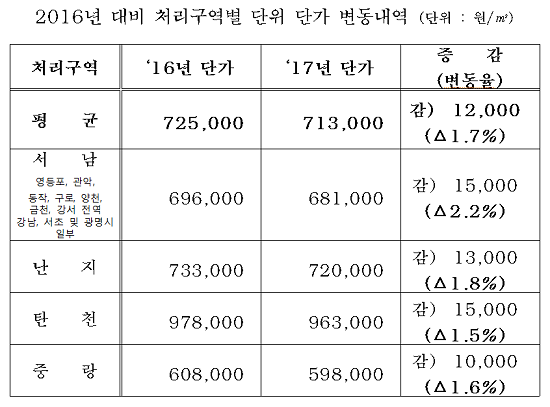 서울시가 2017년 하수도 원인자부담금 단위 단가를 지난해 대비 평균 1.7%(12,000원/㎥) 인하 공고한다.