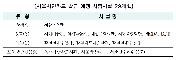 -서울시민카드 플랫폼 개발 및 구축 사업자 공개 모집 -’2018년부터 서울시민카드 발급 대상시설 점차 확대