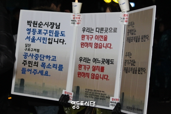 서울시는 “상습정체 지역의 교통난 해소 및 녹지공간 조성을 위해 두 사업을 추진하고 있으며 제물포터널 공사는 신월나들목에서 여의도까지 7.53km 구간, 서부간선도로 지하화는 성산대교 남단에서 금천나들목까지 10km를 지하화하는 사업이다. 이를 위해 양평유수지에 제물포터널 환기구와 서부간선도로 배연구 공사가 진행 중이며 인근 지역 주민들은 “환기구 주변에 주거지와 학교, 생태공원이 인접해 있다”며 공사강행을 반대하고 있다. 특히 “매연·소음발생, 오염물질 배출 등으로 시민 건강이 악화할 수 있다”는 점을 강조한다. 본지는 지역주민과 자치단체의 충돌이 빚어지고, 공사추진 반대를 위한 1인 시위가 이어지고 있는 가운데 제물포·서부간선 환기구 주민 비상대책위원회 구교현 위원장과 서면·전화인터뷰를 연속으로 진행해 그 내용을 독자들에게 전한다. 제물포·서부간선 환기구 주민 비상대책위원회 구교현 위원장(아래 비대위원장)은 “이 사업이 영등포 주민과 충돌이 시작된 것은 지하도로에서 올라오는 굴뚝 때문이었다”며 말을 이었다. 현재 양평유수지에 2개, 안양천 건너 목동에 1개의 굴뚝이 현재 공사 중으로 양평동에는 서부간선 지하도로 진·출입구가, 여의도에는 제물포터널 진출입구가 공사 중이다. 이와 관련해 구교현 비대위원장은 “영등포는 이 땅속도로의 영향을 가장 크게 받은 지역이 되었다”고 주장하고 “애초 서울시는 이 굴뚝을 환기 목적으로 쓰려 했다. 학교·어린이집 아파트가 밀집한 지역에 땅속도로에서 나오는 매연을 배출하겠다는 것이었다”며 “참으로 위험천만한 발상이다”고 비판의 날을 세웠다. 구 비대위원장은 “수 개월에 걸친 주민들의 반대운동 결과, 서울시는 작년 말 매연을 배출하지 않고 터널 내부에서 정화하는 ‘바이패스’ 방식을 도입하겠다”고 밝혔지만 “바이패스 방식의 설계도도 나오지 않은 상태에서 굴뚝공사를 진행하고 있다”며 분통을 터뜨렸다. 구교현 비대위원장은 서울시가 새로이 도입하겠다는 바이패스 방식에 대해서도 의문을 제기했다. “바이패스 방식은 충분히 공기정화가 가능한지, 오랜 기간 이상 없이 작동할 수 있을지 등이 검증되지 않았다”는 것이다. 서울시의 반응에 관해 묻자 “서울시는 ‘공사기간을 맞춰야 하니 어쩔 수 없다. 우리를 믿으라’는 입장만 되풀이하고 있다”며 “바이패스 설계도가 나오고 충분히 검증절차를 거친 후 공사를 재개해야 한다”고 주장했다. 구교현 비대위원장은 “굴뚝을 배연·탈출구로 써야 한다”라는 서울시·시공사의 입장에 대해서도 “제물포터널에서 양평동과 목동 굴뚝은 거리가 매우 가깝고, 둘 다 지하도로의 한가운데 있다. 위급한 상황에서 배연·탈출이 빠르게 이뤄지려면 다른 나라의 사례처럼 땅속도로 곳곳에 배연·탈출구가 위치해야 맞다”고 주장하고 “그런데 서울시·시공사는 그렇게 하면 돈이 많이 드니 양평동과 목동만 배연·탈출구로 쓰겠다는 입장이다”며 서울시·시공사에 대한 불신을 나타냈다. 서울시·시공사의 소통 부재가 “갈등을 심화시켜왔다”고 목소리를 높인 구 비대위원장은 “굴뚝이 집중되는 양평동 지역을 대상으로 한 설명회는 2013년 단 한 차례 열렸다. 그것도 기재 인원은 14명에 불과했다”며 “2015년 말부터 공사가 시작되었는데 주민들은 2016년 10월이 되어서야 실체를 알게 되었다”고 주장했다. 구교현 비대위원장은 “서부간선·제물포터널의 예산은 총 1조 원가량이 예상된다. 그러나 예기치 못한 상황으로 돈이 더 들어갈 가능성이 높다”고 주장하고 서부간선·제물포터널은 30년간 민자 회사가 운영한다는 점을 지적하고 “이들은 공사에 들어간 돈을 통행료로 보전받으려 할 것이고, 부담은 고스란히 시민들에게 돌아올 것이다”며 거듭 공사 중단을 촉구했다. 구 비대위원장은 서울시·시공사가 “터널 사고는 주로 대형화물차나 버스 등이 초래한다며 승용차, 승합차, 1톤 트럭만 다니는 서부간선·제물포 터널은 사고 발생률이 매우 낮다”는 주장에 대해서도 조목조목 반박했다. 구교현 비대위원장은 “올해 들어서만도 터널에서 크고 작은 교통사고가 5건이나 발생했다”면서 “서부간선·제물포 터널은 기존 터널보다 훨씬 더 길고 깊이도 70m 수준으로 구간의 절반 정도는 아래로 내려가고, 절반은 위로 올라오는 삼각형 구조로 되어 있어 사고의 위험이 훨씬 높다”고 주장하고 “왜 이렇게 위험한 도로를 만들고 있는 것이지 모르겠다”며 한숨을 내쉬었다. 구교현 비대위원장은 “서울시는 서부간선·제물포 터널을 시작으로 점차 땅속도로를 늘리려 하고 있다”고 주장하고 “서울시의 행정이 거꾸로 가고 있다”고 비판했다. “서부간선·제물포 터널은 늘어나는 교통량을 줄이는 근본 대책이 아니라, 부족한 지상도로를 지하도로 건설로 보충하여 교통을 분산시키는 정책일 뿐이다”고 주장한 구 비대위원장은 “양평동에는 하루 3번, 주말까지 이어지는 발파공사로 인해 소음·진동·먼지 피해가 계속되고 있다”며 “바이패스 설계도가 나오고 검증이 이뤄질 때까지 공사를 중단해야 한다”며 