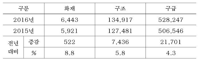 230여 명이 3개 분야에서 자웅 겨뤄! 2016년 서울에서 발생한 화재는 6443 건으로 전년보다 8.8%가 증가했다. 또한, 구조는 5.8%, 구급은 4.3%가 증가하고 있어 소방의 역할과 비중은 날로 커지고 있다.