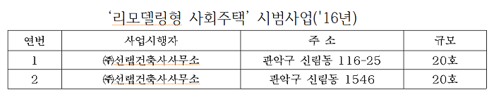 주거관련 주택협동조합, 사회적기업, 비영리법인 등이 사업시행자가 되어서 지은지 15년 이상 된 비주택을 매입‧임대해 리모델링 후 청년 1인가구(무주택, 도시근로자 월평균 소득 70% 이하)에게 최장 6~10년 동안 시세 80%의 임대료로 공급하는 방식이다. 이때 시는 사업기간(6~10년)에 따라 리모델링 비용의 60%~80%(최대 1.5억 원~2억 원)을 무상으로 지원한다. 사업자는 사업비의 최대 90%까지 서울시 정책자금인 사회투자기금(8년, 3% 이하)을 통해 융자를 받을 수 있어 사업비 부담을 덜 수 있다. 특히, 좁은 복도 사이로 방들이 다닥다닥 붙어있어 열악한 주거유형의 상징이었던 고시원을 개인 주거공간과 공유‧커뮤니티 공간(식당, 화장실 및 샤워실, 휴게실. 회의실 등)이 적절히 결합된 셰어하우스로 변신시켜 신개념 1인가구 주거모델로 제시했다는 점에서 의미가 있다. 서울시는 '리모델링형 사회주택' 공급 계획을 이와 같이 밝히고, 이 사업에 참여할 사업시행자를 연중 상시 모집한다고 8일(월) 밝혔다. 참여자격은 주택 리모델링 경험과 능력이 있고 주거문제에 관심이 많은 주택협동조합, 사회적기업, 비영리법인, 중소기업(건설업, 부동산업 및 임대업에 한함)이다. 매입‧임차를 희망하는 건축물에 대해 건물주의 매매(임대) 동의를 받아 사업제안서 등 관련 서류를 방문접수(서울시 주택정책과)하면 된다.