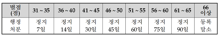 교습정지 2개소, 벌점부과 76개소, 과태료 30개소 5,970만원