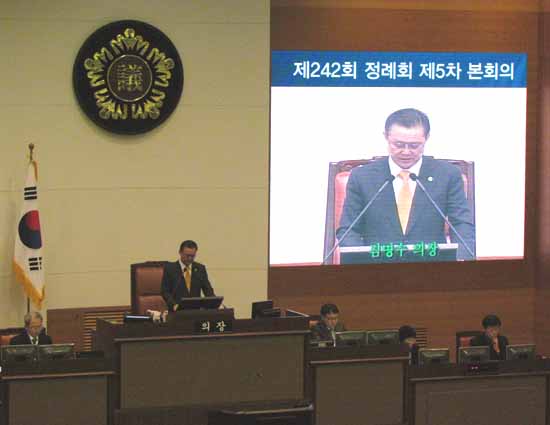 회의를 진행하는 김명수 의장의 목소리는 힘겨워 보였다. 박원순 시장이 추진한 작은 도서관 설립이나, 기초 보장제 예산이 일부 상임위에서 삭감한 것이 알려지면서 시 부서와 예산결산특별위원회가 상임위와 마찰을 보였기 때문일까?