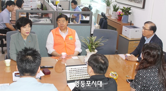 19일(수) 오전 영등포구청 직소민원실에서 김영주 국회의원(영등포갑)과 조길형 영등포구청장이 신길 제11지구 입주대책위원회 위원들의 방문을 받고 생활민원을 상담하고 있다. 이곳은 조합 측과 입주자대책위원회 간의 소통 부재로 인해 크고 작은 민원이 발생하고 있다.