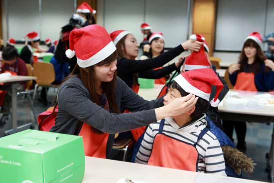 12일 구몬 별관 교육장에서 비영리기관 ‘부스러기사랑나눔회’소속 어린이 30명과 교원그룹 임직원 30명이 참석해 ‘맛있는 크리스마스 파티’를 진행했다. 이 파티는 어린이 한 명과 직원 한 명이 한 팀을 이뤄 유대감을 형성하는 방식이므로, 교원그룹은 이번 행사를 위해 11월부터 사내게시판을 통해 자원봉사자를 모집한 것으로 알려졌다.