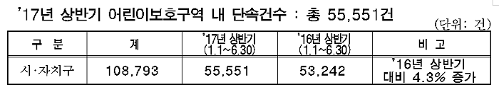 어린이 보호구역내 교통사고 총 266건(’13년 80건, ’14년 96건, ’15년 90건)을 발생위치별로 보면, 도로횡단시 188건(70.7%), 길 가장자리 47건(17.7%), 교차로 12건(4.5%), 기타 19건(7.1%)으로 조사됐다. 시는 자치구와 함께 교통사고가 집중되는 등·하교 시간대에 서울시내 어린이보호구역 1,730개소 초등학교 출입문 주변 등에 단속인력을 집중 배치할 계획이다. 어린이보호구역 내 교통사고의 34%(8~9시 9%, 15~16시 12%, 17~18시 13%)가 등·하교 시간대에 발생한 것으로 나타났다. (’13년~’15년 기준) 시는 6차로 이상 간선도로, 자치구는 6차로 미만 이면도로에서 주‧정차 단속을 실시하며, 과속 등의 단속권한이 있는 경찰과 협업하여 어린이보호구역 안전계도‧단속을 실시한다.