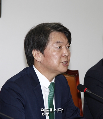 안철수 대표(오른쪽 사진)는 “냉정한 인식, 실질적인 해법, 유능한 전략이 필요하다”고 강조하고 “좌측깜박이 켜고 우회전하고, 우측깜빡이 켜고 좌회전 하는 혼란상은 더 이상 용납되어서는 안 된다”며 “정부의 무능한 안보라인 쇄신”을 촉구했다. 안 대표는 “한반도 상황에서는‘코리아 패싱’이 청와대와 여당의 증세드라이브에서는 ‘김동연 패싱’이 나타나고 있다”고 주장하고 “청와대와 여당이 정밀한 재정 설계 없이 복지확대를 추구 했다”고 비판 하고 “여당은 무조건 증세 압박이다”고 비판했다. 안철수 대표는 증세압박 이전에 “선행되어야 할 것이 있다”며 ▲먼저 중앙정부부터 허리띠를 졸라매고 공공개혁부터 하는 모범 보일 것 ▲혁신과 성장의 가치를 바탕으로 재정투입의 우선순위 설정할 것 ▲복지확대의 중장기 로드맵에 따라 지속 가능한 계획을 세우고 그 이후에 국민적인 합의를 추구하는 것이 상식이요 책임이다”고 주장하고 “국민의당은 지속 가능한 예산, 당대와 미래세대를 함께 책임지는 예산으로 재설계 해내겠다”고 말했다. 김상조 공정거래위원장이 “네이버 창업자인 이혜진 전 의장을 향해 ”스티브잡스처럼 미래는 보는 비전을 제시하지 못했다”고 평가절하고 문재인 대통령을 “스티브잡스와 같다”고 한 발언에 대해 “정치가 기업과 기업가를 머슴으로 보는 오만함과 민낯이 그대로 드러났다”고 주장하고 “박근혜 정부와 무엇이 다른가?”라고 반문한 뒤 “김상조 위원장뿐만 아니라 이 정부 전체에 퍼져있는 생각인 것 같아 심히 걱정스럽다”고 비판했다.