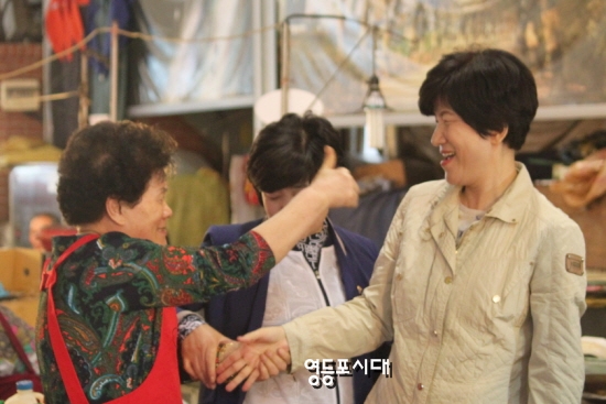 이날 김영주 장관의 전통시장 장보기에는 조길형 영등포구청장과 관계자들이 함께 찾았다. 이 역시 대부분 상인들은 “두 분이 함께 장 보는 모습을 보니 든든하다”, “장관님 축하드린다”, “최고다”라는 반응을 보였으나 일부 상인들은 “도움도 안 되고 복잡하기만 하다”는 반응을 나타냈다.