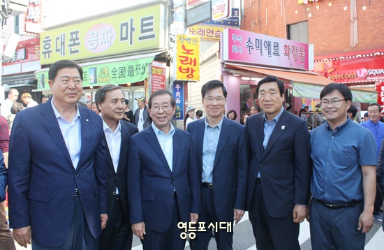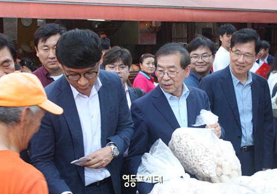 신경민 의원과 박원순 시장 등은 잠시 대화를 나눈 뒤 대림역 12번 출구를 출발해 대림중앙시장 점포를 일일이 돌며 “힘내세요. 파이팅!”을 외치며 격려와 함께 가끔 물품을 구매했다.