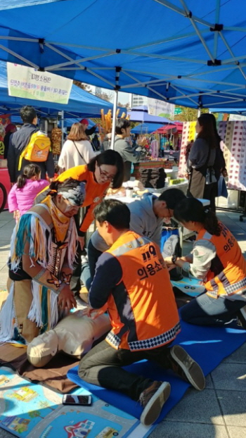 4일 영등포구 신길동 샛강문화광장 다(多) 어울림 이색마을 장터에서 신길동 주민들이 소방안전교육을 받았다.