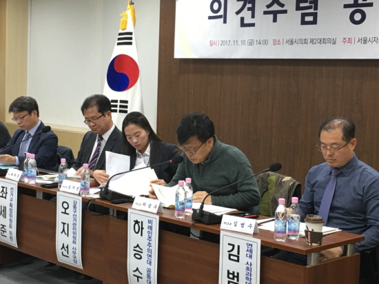 서울시 자치구 의원 선거구획정 위원회는 10일(금) 오후 서울시의회 제2대회의실에서 시민, 전문가 등 100여 명이 참석한 가운데 서울시 자치구의원 선거구획정안 마련을 위한 공청회를 개최했다. 이번 공청회는 서울시 자치구 의원 선거구획정 위원회가 공정하고 투명한 위원회 운영을 위해 의제를 공론화하여 시민과 전문가의 의견을 청취·수렴하기 위해 마련했다. 또한, 내년 제7회 전국동시 지방선거를 대비하여, 자치구의원 선거구 획정을 위해 그동안 두 차례 회의를 진행하는 등 선거구 획정의 원칙과 방향 등에 대한 다양한 의견을 수렴해 왔다. 이날 공청회는 ‘서울특별시 자치구의원 선거구 획정의 기본 원칙’을 주제로 위원회 좌세준 위원(법무법인 한맥 변호사)이 좌장을 맡고, 서복경 서강대 현대정치연구소 연구원과 윤종빈 명지대 정치외교학과 교수의 발제에 이어 토론자 발표, 청중 질의응답 순으로 진행됐다. 토론에는 오지선 강동구선거관리위원회 사무국장, 하승수 비례민주주의연대 공동대표, 김범수 연세대 사회과학데이터센터 연구원 등 3명이 참여했다. 한편, 서울시 자치구 의원 선거구획정 위원회는 공청회에서 제기된 다양한 의견을 반영하여 선거구획정안을 마련할 예정이며, 「공직선거법」에 따라 자치구청장, 자치구의회, 국회에 의석을 가진 정당에 선거구획정안에 대한 의견진술 기회를 부여할 예정이다. 위원회는 선거구획정 최종안을 확정하게 되면 「공직선거법」 제24조의3 제5항에 따라 선거일 전 6개월까지(2017년 12월 13일) 시장에게 제출한다. 서울시 자치구 의원 선거구획정 위원회는 「공직선거법」에 따라, 자치구의원 지역선거구의 공정한 획정을 위하여 학계·법조계·언론계·시민단체 및 서울시의회·서울시선거관리위원회의 추천을 받아 11명으로 구성·위촉했다.