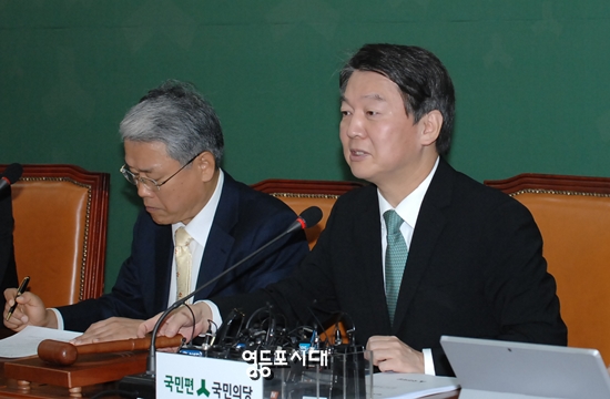 안철수 국민의당 대표(사진 왼족)는 22일 국회에서 열린 최고위원회 모두 발언을 통해 21일 끝장 토론이 벌어졌던 의원총회는 “양당체제로의 복귀를 저지하고 다당제 유지를 통해 우리 당이 정치발전의 중심에 서야한다는 것을 확인한 자리였다”고 강조하고 “우리의 창당 정신을 지키면서 외연을 확대하고 강화하는 노력과 함께 당 내외 여론수렴, 계속해 나가도록 하겠다”고 밝혔다. 바른정당과의 통합을 앞으로도 추진할 뜻을 에둘러 밝힌 것으로 해석되는 대목이다.