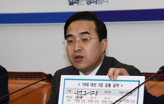 박홍근 원내수석부대표(오른쪽 사진)는 내년 예산 관련해서 “복지위에서는 아동수당과 기초연금, 교문위는 국립대 지원 문제로 파행을 겪다가 상임위 일정조차 기약이 없는 상황이다”라고 어려움을 토로하고 “아동수당 지급, 기초연금 확대, 청년주택 공급, 최저임금 인상 등 야당이 예산을 깎겠다고 한 사업들은 지난 대선에서 자유한국당과 국민의당에서도 공약으로 내건 공통사업이다”밝혔다.