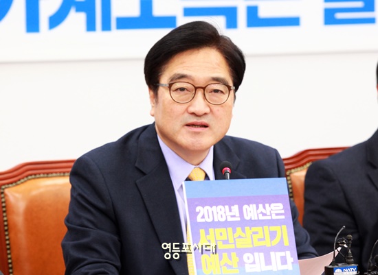우원식 원내대표(오른쪽 사진)는 국민에게 약속한 공약을 이행하기 위한 예산, 촛불민심으로 탄생한 문재인 정부가 국민을 위해 일하기 위한 예산이다”며 이같이 협조를 당부했다. 국회는 헌법에 따라 회계 연도 개시 30일전인 12월 2일까지 예산안을 의결해야 한다.