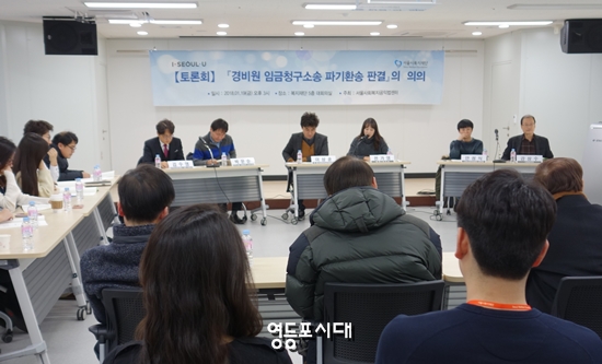 그러나 대법원은 “원심판결은 근무지 외에 독립된 휴게공간을 제공받았는지, 휴식시간에 자유롭게 수면 등을 취했는지, 휴식시간에 순찰을 지시받거나 근무상황을 감시받았는지 등을 충분히 심리하지 않은 잘못이 있다”며 원고승소 취지로 원심법원에 돌려보내라고(파기환송) 판결했다. 서울사회복지공익법센터는 2교대 24시간 근무하는 아파트 경비원들이 “야간 휴식시간도 근무시간으로 인정하고 임금을 지급하라”며 제기한 임금청구소송과 관련하여 원고패소 판결을 한 원심을 파기환송이라는 판결을 받아냈다고 18일(목) 밝혔다. 서울사회복지공익법센터는 이에 따라 ‘경비원 임금청구소송 파기환송 판결’에 대한 의의를 분석하고 향후 제도개선 방안을 모색하는 토론회를 19일 오후 3시 서울복지타운에서 개최했다. 서울시가 2014년 7월 서울시복지재단 내에 설치한 서울사회복지공익법센터(아래 ‘공익법센터’)는 그동안 법률상담과 공익소송, 공익입법 등 취약계층 서울시민을 위한 무료 법률서비스를 제공해 왔으며, 공익법센터가 대리한 이번 소송 또한 어르신들이 많이 취업하는 아파트 경비원 분야에서 흔히 발생하는 첨예한 법률분쟁 사안을 다룬 무료 법률소송이다. 소송의 주요 쟁점은, 아파트 입주자대표회의가 경비원들에게 야간 휴식시간에 경비초소에서 ‘의자에 앉아 가면 상태(para sleep, 일명 ‘일탈수면’이라고도 하며, 몸은 자고 있어도 머리는 활동하는 상태)를 취하면서 급한 일이 생기면 즉각 반응하도록’ 지시했다면 이를 휴식시간으로 보아야 하는지 아니면 근로시간으로 보아야 하는지가 원심의 요지이다. 대법원 파기환송 판결의 요지를 살펴보면 ① 원고(경비원)의 경우 다음의 사정을 종합하면, 야간 휴식시간은 자유로운 이용이 보장되는 휴식 수면시간으로 보기 어렵고, 혹시 발생할 수 있는 긴급 상황에 대비하는 대기시간으로 볼 여지가 충분함. ㉠입주자대표회의가 관리소장을 통해 야간 휴식시간에 경비실 내의 의자에 앉아 가면상태를 취하면서 급한 일이 발생할 시 즉각 반응하도록 지시하고, 야간 휴식시간에 경비실 내 조명을 켜 놓도록 함. ㉡야간 휴식시간에 입주자대표회의의 지시로 시행된 1시간의 순찰업무는 경비원마다 매번 정해진 시간에 이루어지지 않아 경비원들의 나머지 휴식시간의 자유로운 이용이 방해된다는 점. ② 또한, 야간 휴식시간에 경비실에서 불을 끄고 취침하는 경비원들에 대한 입주민의 지속적인 민원이 경비원 근무평가의 사유가 되었으며, 이와 같은 근무평가 결과는 경비원들의 재계약 여부에 영향을 미쳤던 것으로 보이는 점에서 아파트입주자 대표 회의가 관리소장을 통해 야간휴게시간 등에 관한 실질적인 지휘 감독을 하였다고 볼 여지가 크다는 점 등을 들었다. 결국, 대법원은 아파트입주자 대표 회의가 관리소장을 통해 야간 휴식시간 등에 관한 실질적인 지휘·감독을 했다고 볼 여지가 크므로 야간 휴식시간 중 1시간의 순찰업무를 수행한 것만 근로시간으로 인정해 임금지급 의무를 인정하고, 나머지 휴식시간에 대해 실질적인 근무를 한 것으로 볼 수 없어 입주자대표회의의 임금지급 의무가 없다고 판단한 원심을 파기환송 했다. 이날 원고 측 소송 대리인으로 토론회 발제를 맡은 전가영 변호사는 “이번 판결은 경비원의 휴식시간을 판단하는 데 있어 사용자의 실질적 지휘·감독 여부와 더불어 ‘사용자의 휴식시간 보장을 위한 노력 여부’에 중점을 두었다는 점에서 의의가 크다”라면서, “사용자와의 관계에서 열악한 지위에 있는 경비원들이 휴식시간을 자유롭게 이용하기 위해서는 사용자가 그만큼의 노력을 기울여야 한다는 사실을 분명히 한 판례”라고 말했다. 전가영 변호사의 발제에 이어, 김수영 변호사(공익인권법재단 공감), 박문순 민주노총 서울본부 조직국장, 안성식 노원노동복지센터 센터장과 소송당사자 1인이 직접 참석하여 판결의 의의와 경비원 휴식시간 보장을 위한 제도개선 방안 등을 놓고 열띤 토론을 벌였다. 공익법센터 관계자는 “이날 토론회에서 제시된 의견들을 바탕으로 아파트경비업에 종사하는 어르신들이 근무 과정에서 부당한 피해를 보지 않도록 권리구제 및 제도개선을 위해 노력해 나갈 계획이다”고 밝혔다.