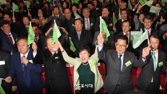축사에 나선 정대철 상임고문은 “정당이란 것은 정치적 이념이나 철학이 비슷해야 한다”고 강조하고 “그러나 바른정당은 산업화 세대고 우리는 민주화 세대다”며 “저쪽은 쿠데타로 시작해 권위주의적 정권, 독재 정권을 이어간 사람들의 후예다”고 같이 할 수 없는 배경을 설명했다.