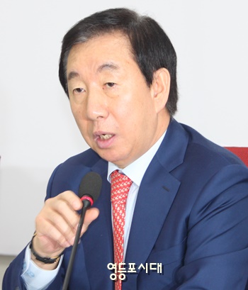 자유한국당 김성태 원내대표(오른쪽 사진)는 3일 오전 국회에서 긴급 기자간담회를 열고 자유한국당 개헌 로드맵을 발표했다.