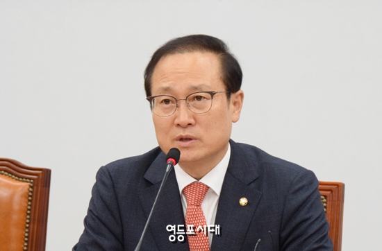 민주당 홍영표 원내대표(오른쪽 사진)는 17일 오전 국회에서 1단계로 완료된 원내대표단이 참석한 가운데