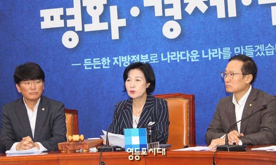 이와 관련에 민주당 추미애 대표(오른쪽 사진 가운데)는 16일 오전 국회에서 최고위원회의를 열고 “최저임금에 민감한 업종의 고통을 충분히 이해한다”면서 “이 문제는 을과 을, 혹은 을과 병의 갈등으로 몰아가서는 절대 해결할 수도, 해결되어서도 안 될 것이다”고 강조했다.