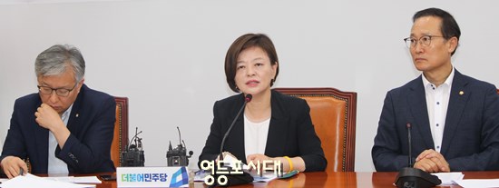 진선미 원내수석부대표(오른쪽 사진 가운데)은 25일 백운규 산업부장관이 “여름철 전력수급을 차질 없이 관리할 수 있다”고 밝힌 것에 대해 “다행스럽지만 폭염 피해자 사망자만 해도 19일 기준 8명이 됐다. 또 농림축산식품부에 따르면 가축의 피해도 엄청 늘어나고 있는 것 같다”며 “이제는 폭염도 재난수준의 대응과 대책이 마련되어야 할 것 같다”고 강조했다.