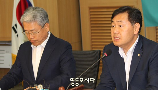 김동철 비상대책위원장(사진 왼쪽)은 의원총회 모두 발언을 통해 “정말 한심하고 경악할만한 일들이 최근 며칠 사이 벌어졌다”면서 “이런 국방부와 이런 군을 믿고 우리가 안보를 맡길 수 있겠는가”라며 “참으로 통탄할 일들이 벌어지고 있다”고 비판했다. 김 비대위원장은 해외에서 기무사 계엄 문건에 대해 특별수사단 구성을 지시하시고 계엄령 관련 문건을 전부 청와대에 제출하라고 지시한 문재인 대통령에 대해 “왜 이런 군의 국방부 장관과 기무사령관과 기무부대장들이 벌이고 있는 이와 같은 행태에 대해서는 한마디도 하지 않고 있는가?”라는 반문으로 비판을 대신했다. 김동철 비대위원장 드루킹 특검이 진행되고 있는 가운데 이주민 서울청장이 유임된 것과 관련 “경찰이 나서서 증거를 인멸하고 은닉하고 명백한 범죄행위라고 생각한다”며 “그런데 이런 서울경찰청장을 유임시켰다”고 강하게 비판했다. 김 비대위원장은 “그러면서 언론에 보도된 것을 보면 이주민 청장을 면직이나 다른 인사 조치를 하게 되면 드루킹 특검에 대해서 자신들의 잘못을 인정하는 것이기 때문에 유임시켰다는 말들이 나오고 있다”며 “자신들의 잘못을 인정하기 싫어서 유임을 시켰다고 그렇게 뻔뻔스럽게 말하는, 이게 나라인가”라며 이에 대한 의원들의 의견 개진을 부탁했다.