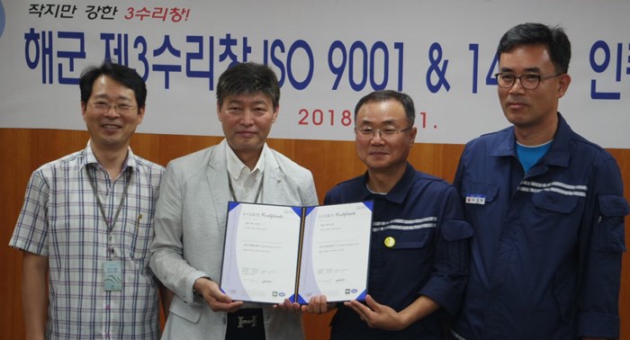 해군 3함대 3수리창이 획득한 ISO 9001, 14001은 ISO(국제표준화기구)가 제정한 품질. 환경경영시스템에 대한 국제표준규격으로 품질, 환경 분야에서 국제기준의 요구사항 및 고객의 요구사항에 만족하고 지속해서 유지 관리되고 있다는 것을 인증 받은 쾌거다.