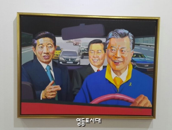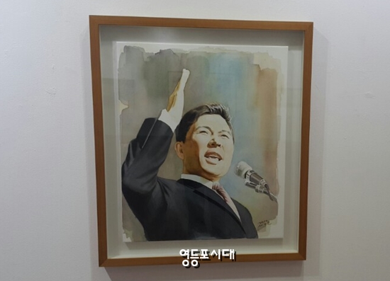 이번 전시회에는 김대중 대통령과 노무현 대통령 그리고 문재인 대통령이 함께 한 그림을 포함해 어록과 역사기록화 등 50여점이 전시되고 있다. 본 기자가 방문한 28일 오후, 김대중평화센터 박한수 실장이 전시장에 나와 관람객을 안내했다.