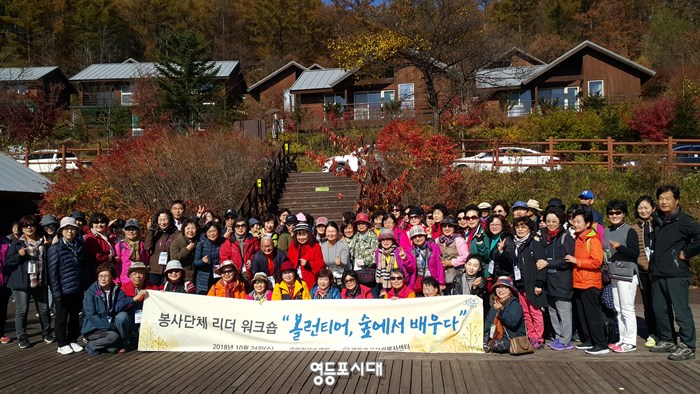 영등포구자원봉사센터(센터장 김찬숙)는 24일 강원도 횡성에서 자원봉사자와 임원진 80여 명이 참석한 가운데 “일반 봉사단체 리더 워크숍 ‘볼런티어(자원봉사자)’, 숲에서 배우다”를 개최 했다.