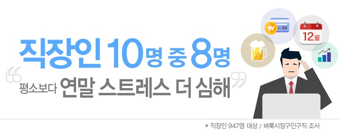 벼룩시장구인구직이 직장인 947명을 대상으로 ‘직장인 연말 스트레스’에 대해 설문 조사한 결과 83.5%가 ‘연말 평소보다 더 스트레스를 받는 것으로 나타났다.