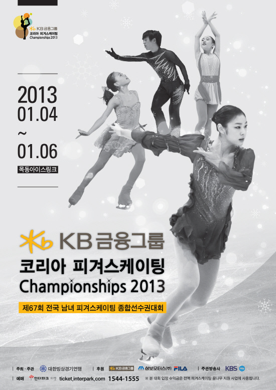 피겨여왕’ 김연아가 출전하는 ‘KB 금융코리아 피겨스케이팅 챔피언십’이 오는 1월 5일과 6일, 목동 아이스링크에서 열린다. 1월 5일에는 김연아의 쇼트 프로그램(뱀파이어의 키스)을 6일에는 프리스케이팅(레미제라블)을 감상할 수 있다.